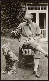 In 1924 Walpole moved into a house near Keswick in the Lake District. His large income enabled him to maintain his London flat in Piccadilly, but Brackenburn, on the slopes of Catbells overlooking Derwentwater, was his main home for the rest of his life.[74] He was quickly made welcome by local residents, and the scenery and atmosphere of the Lake District often found their way into his fiction.[n 14] The critic James Agate commented that one might think from some of Walpole's stories that their author had created the English Lakes, but that he was probably only consulted about them.[76] At the end of 1924 Walpole met Harold Cheevers, who soon became his friend and companion and remained so for the rest of Walpole's life. In Hart-Davis's words, he came nearer than any other human being to Walpole's long-sought conception of a perfect friend.[77] Cheevers, a policeman, with a wife and two children, left the police force and entered Walpole's service as his chauffeur. Walpole trusted him completely, and gave him extensive control over his affairs. Whether Walpole was at Brackenburn or Piccadilly, Cheevers was almost always with him, and often accompanied him on overseas trips. Walpole provided a house in Hampstead for Cheevers and his family.[78]