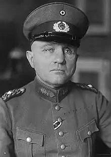 Kayser experienced the end of the war in the hospital and after his recovery in mid-February 1919, he was again given command of the hussar regiment "von Zieten" (Brandenburg) No. 3, and after the dissolution of the association on 1 August 1919 he was commanded to serve at the Ministry of War.[5] On 1 October 1919 he was transferred to the Ministry with his appointment as Chief of Staff of the Cavalry Inspection. With seniority on 1 October 1920, Kayser was promoted to Colonel on 18 December 1920. From October 1921 to the end of December 1925, he was commander of the cavalry school of the Reichswehr in Hanover rose to the rank of Generalmajor and subsequently became commander of the 2nd Cavalry Division in Breslau. On 1 October 1926 Kayser moved again to the Reichswehr Ministry with the appointment of Inspector of Cavalry and was promoted to Generalleutnant on 1 February 1927.[1][6] Promoted to General of the Cavalry, he was finally appointed Commander-in-Chief of the 2nd Group Command in Kassel on 1 December 1929. On 30 November 1931, Kayser retired with permission to wear the uniform of the 3rd (Prussian) Cavalry Regiment. He was also a Knight of Honor of the Order of St. John.[3]