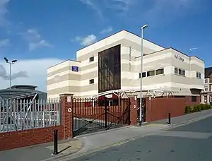 Hull Cannon Street station closed to passengers on 14 July 1924,[2] after the London and North Eastern Railway had built the Spring Bank chord to Hull Paragon, and passenger services were diverted there. It closed completely on 3 June 1968. The wooden passenger buildings had disappeared by the late 1970s, the goods office which stood parallel to the street was demolished after 2002. In 2005 Hull College has built motor vehicle workshops for training purposes on the site. Only one set of the iron entrance gates with the original company legend has been reused as the main entrance to the new facilities.[1]
