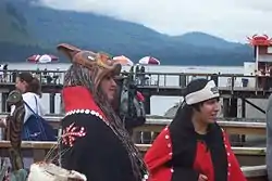 Tlingit garbed people and items at the cruise ship destination Icy Strait Point which is funded by the corporation