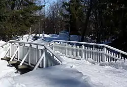 The Hupisaaret Islands City Park is a public urban park in the Myllytulli district in central Oulu, Finland. The park is located in the delta of the River Oulu. The area was built as a public park in the 1860s, the first white wooden bridges that characterize the park were also built at the time.[1]