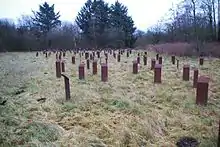 The Husum-Schwesing subcamp (German: KZ-Außenlager Husum-Schwesing) in the Schwesing district of Engelsburg, about five kilometres northeast of Husum, became a satellite of Neuengamme concentration camp on 26 September 1944 and was occupied by prisoners in connection with the construction of the so-called Frisian Wall (Friesenwall). Some 2,500 people from 14 countries were incarcerated here in autumn 1944; 297 prisoners died as a result of forced labour, malnutrition and abuse. The camp was closed on 29 December 1944.