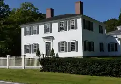 It is one of the few full Georgian-plan houses in western New Hampshire, and is similar to the Pierce Mansion in Hillsborough and the Faxon House in Washington, New Hampshire. It was built over the period 1805–1809, with construction probably delayed by the economic hardships during the second Jefferson administration. The interior of the house displays the changes in taste that were occurring during the early nineteenth century, and may have been occasioned by the extended period of construction. The interior of the south side of the house is in the Georgian mode with paneled fireplace walls and doors with the typical Georgian panel arrangement. On the north side the Federal style predominates with Federal-style door panel arrangement (small panels at the top of the door rather than in the middle). The Federal style is further reflected in the stenciled walls in both northern chambers. These stencils are attributed to Moses Eaton, Jr. Another unusual feature is the presence of two kitchens, each with cooking fireplaces and intact bake ovens.