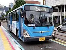 The Hyundai New Super Aero City (Hangul:현대 뉴슈퍼에어로시티) is a heavy-duty single-decker bus manufactured by the truck & bus division of Hyundai. It was introduced in 1991. It primarily used as a city bus and an intercity bus as either a complete bus or a bus chassis. It is distinguishable by a front 'Aero City' badge, but the common Hyundai badge is usually on the rear. The model's principal competitors is the Daewoo BS106 Royal City, but it also competed against the now-discontinued Kia AM bus series (originally Asia AM).