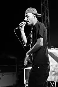 Clemente Maccaro (born 21 December 1982), known by the stage name Clementino, is an Italian rapper, songwriter and actor, proficient in freestyle in both Italian and Neapolitan language. Along with rapper Fabri Fibra, he is a member of the group Rapstar, formed in 2012.[1][2] After winning several freestyle competitions between 2004 and 2006, he signed a contract with the independent record label Lynx Records, releasing the debut album Napolimanicomio in 2006. Three years later, he joined Videomind, releasing IENA in 2011. In 2013 the rapper signed a contract with the record label Universal, publishing shortly afterwards Mea culpa, who had a moderate success in the motherland, reaching fourth position in the FIMI album charts and being certified a gold record.
