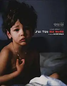 I Killed My Mother (French: J'ai tué ma mère) is a 2009 Canadian drama film written, directed, produced by and starring Xavier Dolan, in his directorial debut. Loosely autobiographical, it follows the complicated relationship between a young man Hubert Minel (Dolan) and his mother (Anne Dorval). The film attracted international press attention when it won three awards from the Director's Fortnight program at the 2009 Cannes Film Festival.[4][5] After being shown, the film received a standing ovation.[6] It was shown in 12 cinemas in Quebec and 60 in France.[7][2][8]