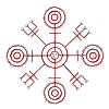 | Ægishjálmur | Helm of Awe (or Helm of Terror); to induce fear, protect the warrior, and prevail in battle.[2] | ![]() |