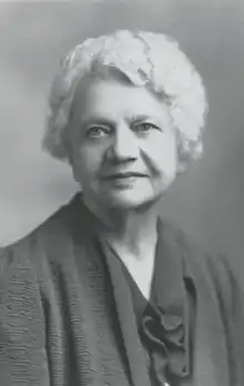 Kuhn left her positions in 1912 to travel the world, returning to the U.S. in 1916.[14] She resumed her work for the Daughters of the American Revolution, being active in both social and political endeavors. In 1918, as a DAR assembly speaker, she emphasized the need to "purge all schools of pro-German and anti-American teachers."[15] In 1935, with World War II approaching, Kuhn actively stood by her anti-propaganda beliefs and lobbied the question of national defense against "foreign-bred, hydra-headed subversive propaganda" at the DAR convention.[16]