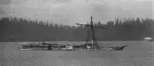 She was dislodged by a strong gale[57] and floated free. Ironically, she may have gained enough buoyancy to escape the rocks because everyone assumed she could not. The tons of anchors, chain, and other materials that were taken off might have made the difference. She was spotted drifting in the Strait of Juan de Fuca on the morning of December 20, 1889.[58] She was taken in tow by a succession of vessels and finally reached Port Townsend where she sank.[59]