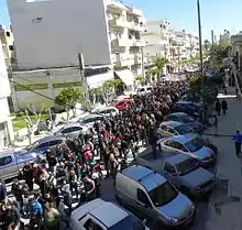 In 2003, the Technological Educational Institute (TEI) of Marketing and Commerce was opened in Ierapetra.[7] In the wake of the Greek financial crisis, in early 2013, the government had to decide whether to merge or close several schools (in a plan named "Athena" after the Greek goddess of wisdom), including TEI of Marketing in Ierapetra, sparking protests. Around 7,000 people staged a peaceful protest on 8 February 2013 holding candles and torches. Local authorities and local media described the march as "the biggest rally in Ierapetra to date."[8] On 12 February 2013, the town of Ierapetra witnessed a big protest rally, as thousands of people took to the streets once again, demanding the TEI school to stay in town and the hospital to be upgraded.[9]