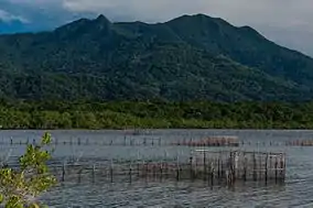 The Ilha do Cardoso State Park is in the municipality of Cananéia in the extreme south of the state of São Paulo. It covers an area of 13,500 hectares (33,000 acres).[1] The state park occupies about 90% of the Ilha do Cardoso, and can be reached by boat from the town of Cananéia.[2] The island is bounded by the Atlantic Ocean to the east, the Bay of Trapandé to the north, the Ararapira Channel to the west and the Ararapira Bar to the south.[1] The Atlantic coast has beaches, dunes and rocky shores.[3] The park is part of the Lagamar Mosaic:[4]