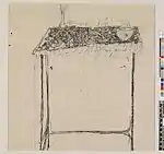 The subject of these drawings, a small and always visible table is prosaic, it is always at hand. The lines on these drawings are never the contour of the closing of an area: they always move, thus liberating mysterious energies.