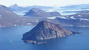 Aerial view of Illorfik Island off Nuussuaq Peninsula