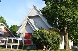 It has lancet windows down its sides. By 1983, a new church had been built next door and this building was no longer used for church services, but it was used for other purposes by the congregation.[2]