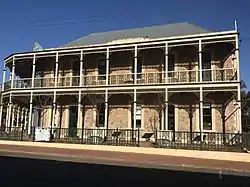 The Imperial Hotel was the first hotel to be built in York, Western Australia that adopted the new "Australian hotel" style in hotel design, with a dominant position on a main street corner block, high and ornate double verandahs surrounding the façade and a main entrance onto the street.[2] The building is in Victorian Filigree style.