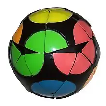 The Impossiball is a rounded icosahedral puzzle similar to the Rubik's Cube. It has a total of 20 movable pieces to rearrange, which is the same as the Rubik's Cube, but all of the Impossiball's pieces are corners, like the Pocket Cube.