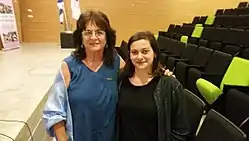 Shaden Kanboura on the right with Ofra Rimon at the screening of the film "In Between" at the University of Haifa, 22 May 2017