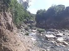 Evidence given by Italian aerial photographs of the catchment, taken in the 1930s show that 55% of the catchment was covered with woody vegetation (against 35% in 2014).[5] Up to the 1980s, there was strong pressure on the environment, and much vegetation disappeared.[6] This river had its greatest discharges and width in that period. The magnitude of floods in this river has however been decreased in recent years due to interventions in the catchment. At Addi Meles, Kidmi Gestet, May Hib'o, Gemgema, May Be'ati and on other steep slopes, exclosures have been established; the dense vegetation largely contributes to enhanced infiltration, less flooding and better baseflow.[7] Physical conservation structures such as stone bunds[8][9] and check dams also intercept runoff.[10][11]