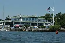 This was primarily a sailing club and Henry E. Doremus was the first Commodore, William Ross Proctor the Vice Commodore, and Charles J. Hart the Rear Commodore. The club's first headquarters were in New York, and in 1892 it leased Finch's Island in Greenwich as its sailing base. The present property was developed in 1895 by Commodore Charles T. Wills, and the clubhouse dates to 1921. It is an unusual example of Mediterranean Revival design, by architect Henry Pelton, then a member of the club's race committee.[2]