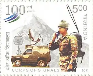 Indian Army Corps of Signals is a corps and a combat support arm of the Indian Army, which handles its military communications. It was formed on 15 February 1911 as a separate entity under Lieutenant Colonel S H Powell, and went on to make important contributions to World War I and World War II.[1] The corps celebrated its 100-year anniversary of its raising on 15 February 2010.[2]