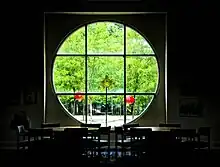 The two buildings are connected by the Churchman-Fehsenfeld Studio. The west building is home to the Ruth Lilly Library, an octagonal two-story atrium with 12-foot (3.7 m)-diameter circular windows on all sides, and a fireplace with ceramic tiles fired in the center's own kiln.[7][9] The west building features the center's administrative offices, the Stan & Sandy Hurt conference room, a studio prep and storage area, painting, drawing, printmaking, photography and computer graphics studios. The east half of the building consists of studios for woodworking, glassblowing, ceramics, metalsmithing, steel and stone sculpture and benchwork.[7]