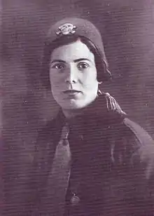 The following year, during the 1921 Italian General Election, Donati participated in the civil voluntary service and created propaganda for the Fascist national candidates.[3] On February 18, 1921, at the Caffè Aragno in Rome,[2] near the Montecitorio Palace, the Deputy of the Italian Socialist Party, Alceste Della Seta,[10] was beaten, the second attack that he suffered.[11] The first planned target of the attack was Nicola Bombacci, one of the founders of the Communist Party of Italy.[3] She was arrested and spent one month in jail in connection with the attack.[5] On July 31 she was attacked by the anti-Fascist group[12] Arditi del Popolo in Trastevere, who spent 20 days in hospital as a result.[3] In 1921 she received what Fascists would later call her "battesimo del fuoco" (baptism by fire) at Ravenna, the location of a nationalist congress; Luigi Federzoni described her as "fearless, standing between the whistle of bullets".[3]