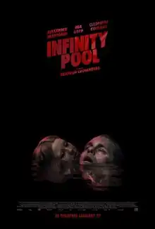 Infinity Pool is a 2023 science fiction horror film written and directed by Brandon Cronenberg, and starring Alexander Skarsgård, Mia Goth and Cleopatra Coleman. The film follows a struggling writer and his wife on vacation who, after an accident, discover the country's dark culture.