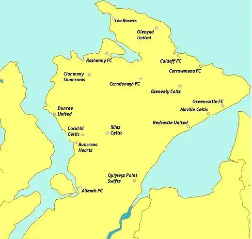 Teams from the Premier and First Divisions take part in the FAI Junior Cup, which features 600-plus teams from around the country. Teams who do well in the Jackie Crossan Premier are invited to compete against other clubs from around Ulster. Teams from the Inishowen Football League have been competing in the cup for a long time and continue still.