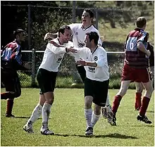 A 2008/9 season game. Clonmany Shamrocks celebrate after scoring a goal