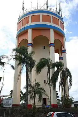 The Innisfail Water Tower was built during 1933 and 1934 and was part of a significant infrastructure project in one of Queensland's most important sugar-growing regions. Designed by the Irrigation and Water Supply Sub-Department of the Queensland Lands Department, it is situated on Mellick's Hill at East Innisfail from where it is visible from all parts of the town of Innisfail making it an important landmark.[1]