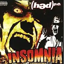 Insomnia is the sixth studio album by American rock band (həd) p.e.. It was released on July 17, 2007 via Suburban Noize Records. Production was handled by the band's lead singer Jahred. It features guest appearances from Big B, Kottonmouth Kings, Roscoe and Tech N9NE. The album peaked at number 138 on the Billboard 200 and number 16 on the Independent Albums in the United States. The album's lead single, "Suffa", became one of the most requested tracks at Sirius Satellite Radio's Hard Attack, while the song's music video was voted one of the Top 10 of 2007 on MTV's Headbangers Ball.[6] Hed PE has cited thrash metal bands such as Slayer as an influence on the musical style of Insomnia.[7]