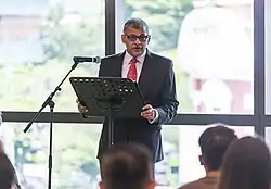 Aloun Ndombet-Assamba, High Commissioner of Jamaica to the United Kingdom, received the 2014 International Jurists Award for her contributions to Alternative Dispute Resolution. Assamba was cochair of the session on Mediation.[18] Peter Tomka, president of the International Court of Justice, presented Ashok Chauhan, Founder President of the Amity Education Group, with the International Council of Jurists Award 2014 for his contribution to legal education.[20] Awards were also given to Mark Stephens, President of the Commonwealth Lawyers Association and author J. K. Rowling.[18] The ceremony was attended by chief justices, ministers, judges, members of parliament and other prominent people.[20]