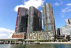 The tallest tower, known as Tower 1 is a 217m commercial building comprising 49 floors. It was completed in mid 2016. PricewaterhouseCoopers signed as the anchor tenant and HSBC and Marsh & McLennan Companies also signed a tenancy agreement.[2] The Syrian Opposition representation office in Australia is located in this building.
