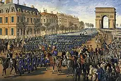 German troops parade down the Champs-Élysées in Paris after their victory in the Franco-Prussian War