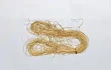 The skin of cetaceans like beluga whales and narwhals was sometimes used for boot soles.[112] Whale sinew, especially from the narwhal, was prized as thread for its length and strength. Tusks from narwhal and walrus provided ivory, which was used for sewing tools, clothing fasteners, and ornaments. In Alaska, fish skins were sometimes used for clothing and bags, but this is not well-documented in Canada.[114][120]