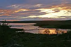 The Iokanga (Russian: Иоканьга) is a river in the north of the Kola Peninsula in Murmansk Oblast, Russia. It is 203 km in length. The area of its basin is 6,020 km².[1] The Iokanga originates in Lake Alozero and flows into the Barents Sea. Its biggest tributary is the Sukhaya. The river's indigenous Sami inhabitants have traditionally spoken the Ter Sami language. However, in the 1930s the largest Ter Sami village, Yokanga, was declared "perspectiveless" by the Soviet authorities and its inhabitants were forced to move to the Gremikha military base.