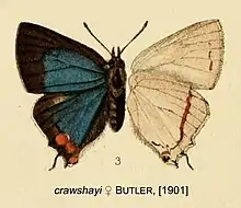 Iolaus crawshayi, the Crawshay's sapphire, is a butterfly in the family Lycaenidae. It is found in Ethiopia, Somalia, Kenya, Uganda, the Democratic Republic of the Congo and Tanzania.[2] The habitat consists of moist savanna.