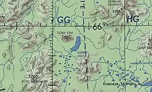 Lake Ioni (Russian: Иони), also known as Yonai (Russian: Ёонай), (Chukot: Юнин, Yunin) is a large freshwater lake in Chukotsky District, Chukotka Autonomous Okrug, Russia.[1] It has an area of 27.8 km2 (10.7 sq mi).[2] Currently there are no permanent settlements on the shores of the lake, but there are remains of Stone Age dwellings.[3] Reindeer herders occasionally visit the area, as well as fishermen. The nearest inhabited place is Lorino, located 102 km (63 mi) away.[1]