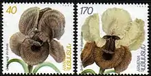 On 19 December 1997, as part of Flora and Fauna of Armenia (III issue) in the 'Irises' series, 2 stamps had images of the irises,[12] (See images on the right), also on 12 August 1993, a commemorative stamp was issued in Azerbaijan, from the Flowers series, Iris elegantissima.[44]