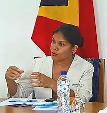 In 2001, she was elected a Member of the Constituent Assembly, by UDT, dedicating herself, in particular, to the drafting of the articles of the Constitution of East Timor, relating to human rights.[1]