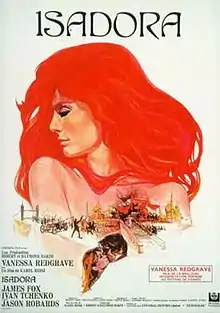 Isadora (also known as The Loves of Isadora) is a 1968 biographical drama film directed by Karel Reisz from a screenplay written by Melvyn Bragg, Margaret Drabble, and Clive Exton adapted from the books My Life by Isadora Duncan and Isadora, an Intimate Portrait by Sewell Stokes. The film follows the life of American pioneering modern contemporary dance artist and choreographer Isadora Duncan, who performed to great acclaim throughout the US and Europe during the 19th century. A co-production between the United Kingdom and France, it stars Vanessa Redgrave as Duncan and also features James Fox, Jason Robards, and John Fraser in supporting roles.