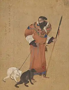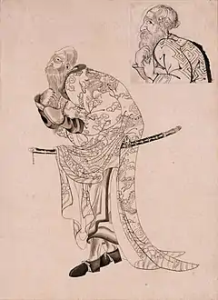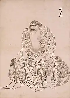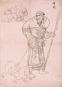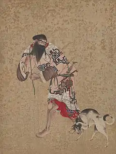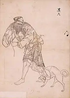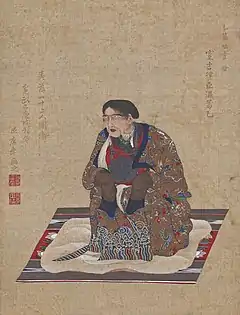 Ishūretsuzō (夷酋列像), also known as or A Series of Paintings of Ainu Chieftains[1]:5 or Portraits of Ezo Chieftains,[2]:9 is a series of twelve painted portraits, dating to 1790, of Ainu elders in the aftermath of the Menashi–Kunashir rebellion. They are by the Japanese artist and Matsumae Domain retainer Kakizaki Hakyō (1764–1826). Eleven of the twelve paintings survive, in the collection of the Musée des Beaux-Arts et d'Archéologie de Besançon. A number of preparatory drawings and copies are to be found in collections in Japan. The clothing worn and other accoutrements depicted help cast light on late eighteenth-century connections between the indigenous inhabitants of Ezochi, the Wajin, China, and Russia.[1][3][4] The portrait of Ininkari from the series also represents the earliest known documentation of brown bears (Ursus arctos) with white pelage, the so-called "Ininkari bears" that are to be found on Kunashir (Kunashiri) and Iturup (Etorofu) in the disputed Southern Kurils.[5]