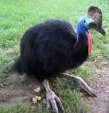 The southern cassowary, a ratite native to Indonesia, New Guinea and northeastern Australia[1] which exhibits island gigantism and sexually monomorphic plumage, both features of island syndrome