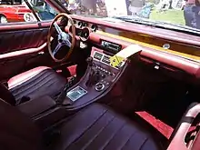 The interior was upholstered in leather and came with creature comforts like air conditioning and electric windows along with plush carpeting. The speedometer and tachometer were placed behind the steering column while an additional four gauges were present on the centre console which consisted of an ammeter, fuel gauge and water and oil temperature gauges. The car came with a hidden headlamp styling with popup covers partially covering the quad headlamp units when not in use.[6]