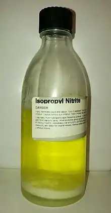 The chemical compound isopropyl nitrite (or 2-propyl nitrite) is an alkyl nitrite made from isopropanol. It is a clear pale yellow oil that is insoluble in water.[1]