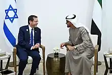 On December 13, 2021, Israeli Prime Minister Naftali Bennett visited the UAE and met with Mohamed bin Zayed Al Nahyan, the Crown Prince of Abu Dhabi. This marked the first time leaders from both countries met with each other. The meeting, which included a shared lunch, went two hours longer than originally expected. Bennet stated that the meeting was about "the region, our economy and technology."[30]
