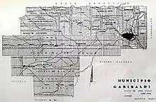 When the fiftieth anniversary of immigration was celebrated in 1925, the state government organized an exhibition in Porto Alegre, bringing the best agro-industrial and artistic products from the colonies, being a success, and at the same time published a substantial collection of critical essays and informative and statistical articles about the Italian presence in the state of Rio Grande do Sul, in two volumes, entitled Cinquantenario della Colonizzazione Italiana nel Rio Grande del Sud, 1875-1925. In it was done a mapping, unprecedented for its comprehensiveness and detail, of the activity of the Italians and their descendants in a long list of cities where they left their marks in the most diverse domains.[1] Also not forgotten was the passing but powerful presence of other Italians such as Tito Livio Zambeccari and Giuseppe Garibaldi.[45]