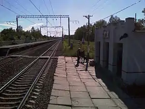 Ivanovskaya (Russian: Ива́новская) is a railway station of the October railway[1][2], located in Otradnoye (suburb of Saint Petersburg), Russia. It was opened in 1918[3]. The station is located 33 km from Moscow Station (the main station in St. Petersburg) on the Sapernaya - Pella stretch, the St. Petersburg - Volkhovstroy line. There are two platforms at the station which receive electric trains 12 carriages long. There is also a ticket office.