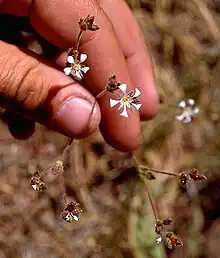 Ivesia pickeringii is an uncommon species of flowering plant in the rose family known by the common names silky mousetail and Pickering's ivesia. It is endemic to the Klamath Mountains of northern California where it is a plant of mountain meadows, often on serpentine soils. This is a perennial herb forming tufts of long, erect leaves and thin, naked stems. Each leaf is a taillike strip of overlapping lobed leaflets. The reddish to greenish stems reach 30 to 50 centimeters in height and bear inflorescences of clustered flowers. The stems, leaves, and inflorescences are all covered in fuzzy white to gray hairs. Each flower is about a centimeter wide, with pinkish-green triangular sepals and longer, narrower pink or purple petals. In the center of the flower are 20 stamens and a few pistils.