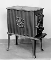 Jøtul F 602 woodstove, designed in the late 1930s by the architects Blakstad and Munthe-Kaas and decorated by sculptor Ørnulf Bast